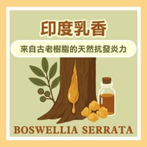 印度乳香取自乳香樹的樹脂, 自古以來在印度傳統醫學中被用於維持體內平衡、消化與關節健康。 現代研究發現,其主要活性成分──乳香酸(Boswellic...